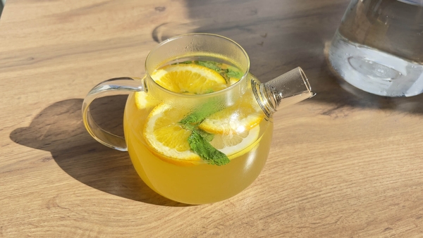 Состав:лимон, апельсин, пюре манго, мята, мёд, сироп ваниль