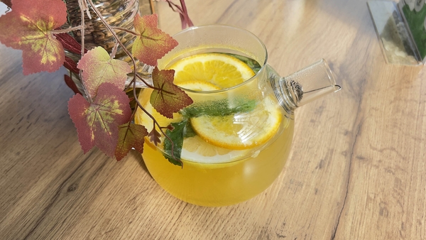 Состав: имбирь, апельсин, мята, мёд, сироп ваниль, палочки корица.