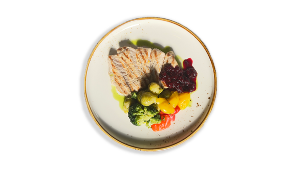 Состав стейк индейки,филе курицы,лук репчатый,шампиньоны,сливки,картофельное пюре,бульон куриный ,зелень